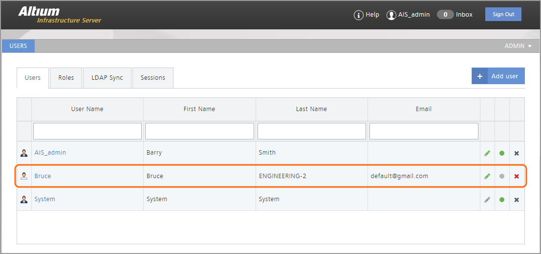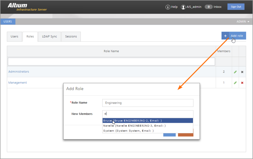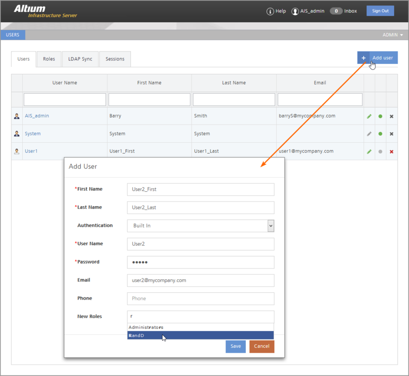Administrator, by entering the Role name in this field. The field will dynamically search for an existing Role that matches the first letter(s) you have typed. By default, Users are not included in a Role group – see below for information on creating user Roles.An automatically generated User profile is dynamically created by the AIS License Service when a connection is made from an Altium software workstation, or when a user signs in to the AIS.
