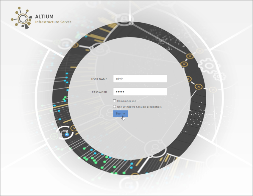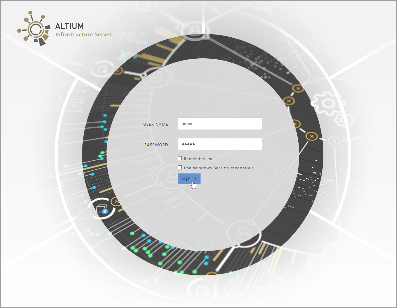 A valid AltiumLive user account is required to access and acquire licenses from the Cloud. To establish the initial connection to the AltiumLive License Server, enter your account credentials in the AltiumLive Sign In dialog and complete the sign in. The assumption here is that the Infrastructure Server has access to the internet.