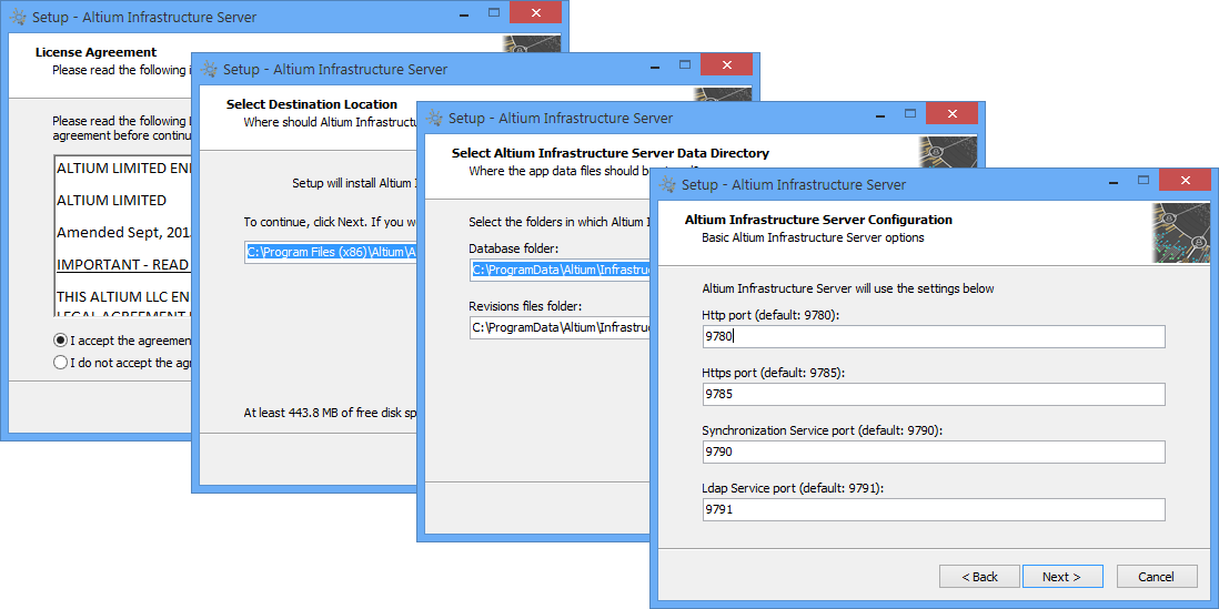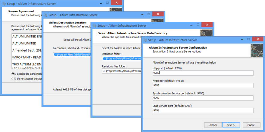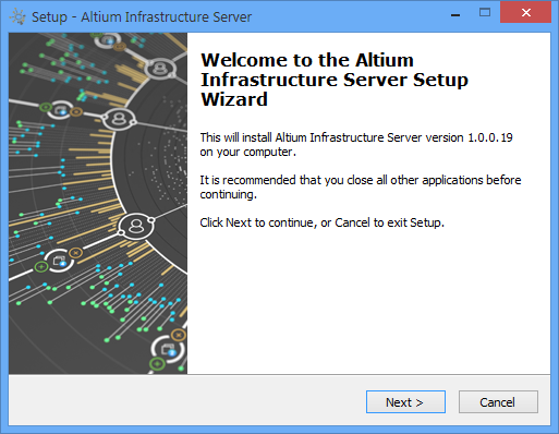Activate the installation process by extracting (from the source Altium_Infrastructure_Server_[version].zip file) and running the Infrastructure Server installation executable – Altium Infrastructure Server <version number>.exe. The sequential setup dialogs presented by the installation wizard will guide you through the process.
