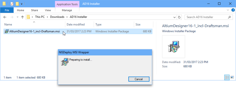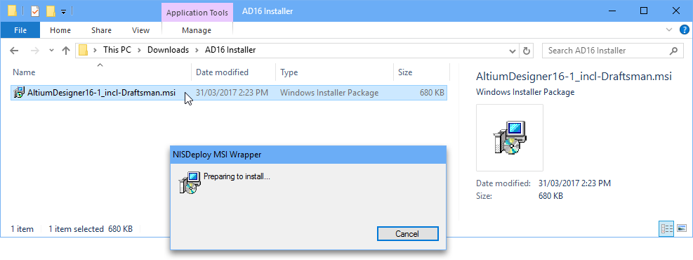 ), to the browser’s default download location, and distributed accordingly. In the example shown here, the resulting installer package is AltiumDesigner16-1_incl-Draftsman.msi.