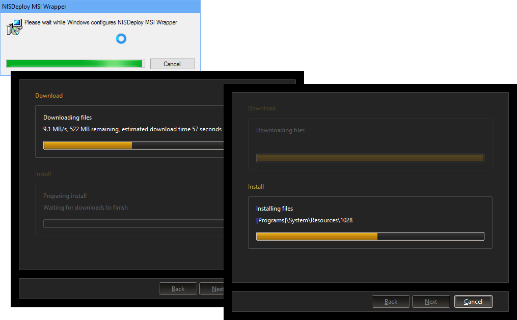 The Network Installation Service (NIS) in the Infrastructure Server supports remote software installations using installer package (*.msi) distribution, or with a centralized approach that uses mass Group Policy Installation in a Microsoft Active Directory domain. In both cases, the Infrastructure Server acts as the networked source for the installation files that are retrieved by a deployed installer.