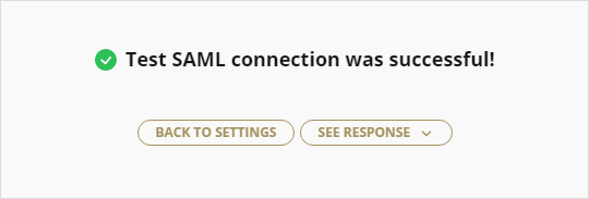 button. This verifies the SSO identity process and your company's SSO sign-in, and then provides a confirmation message that includes the option to inspect the SAML authorization result (