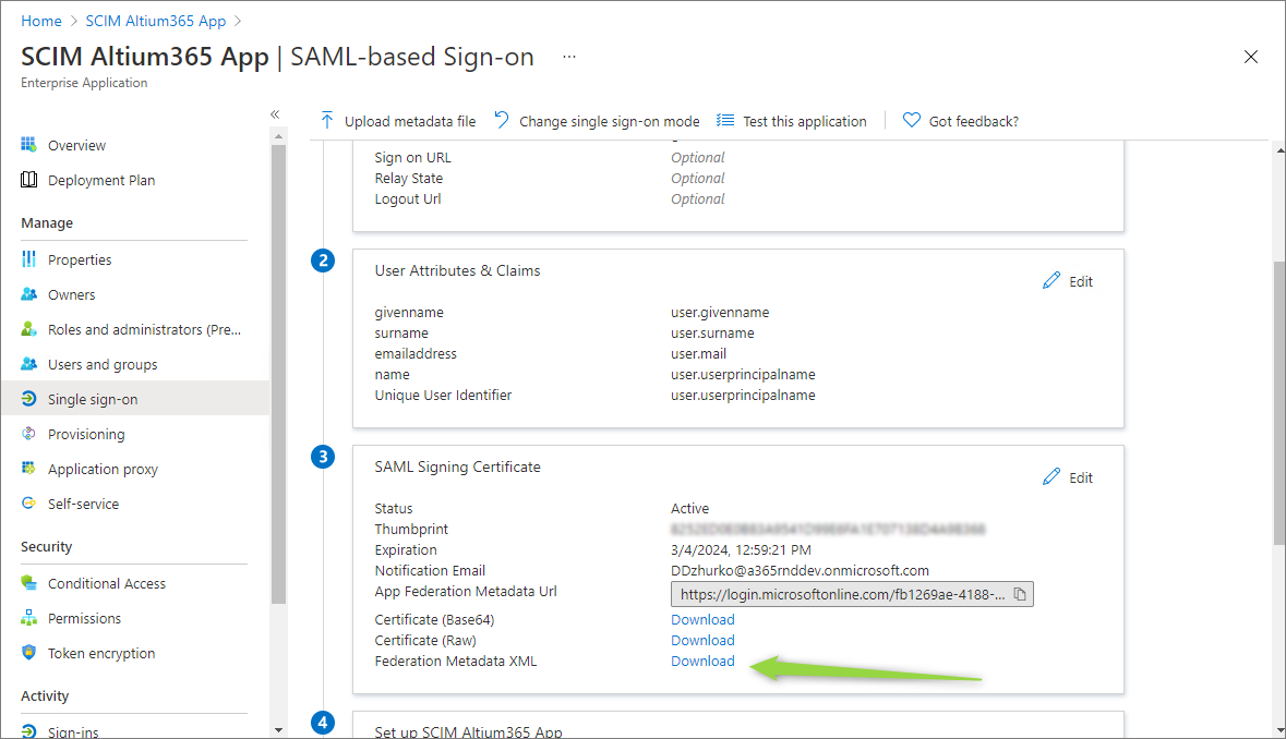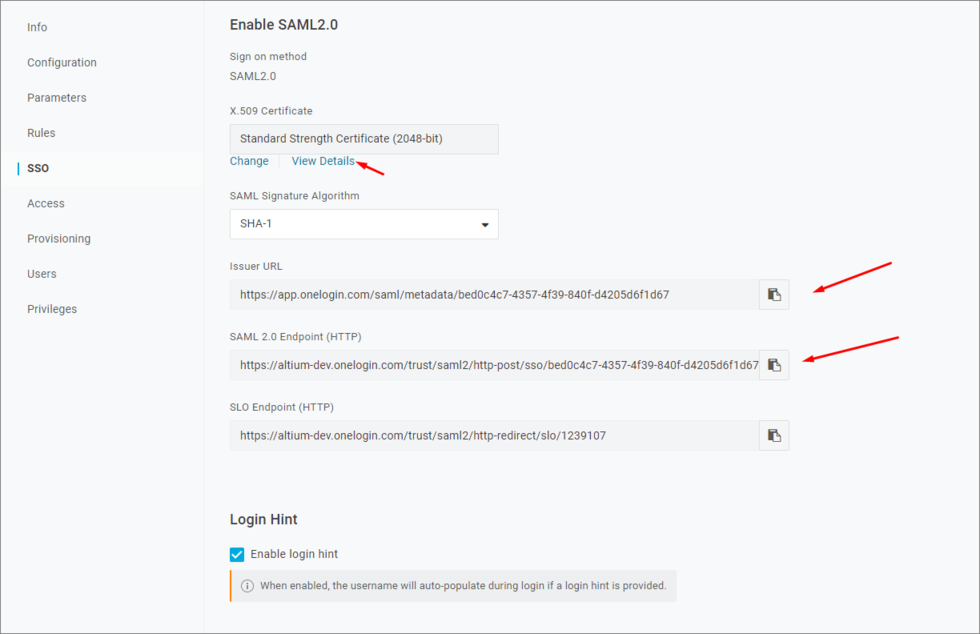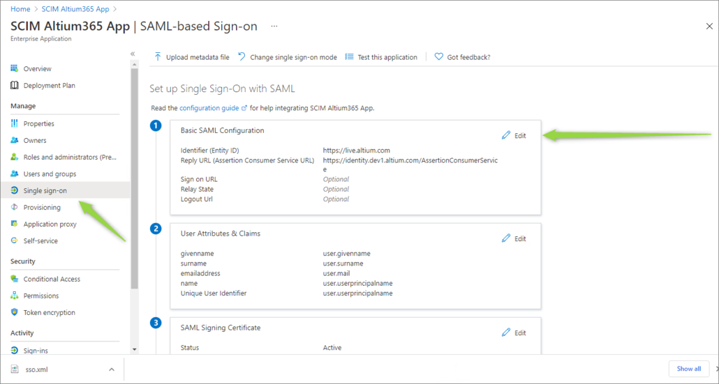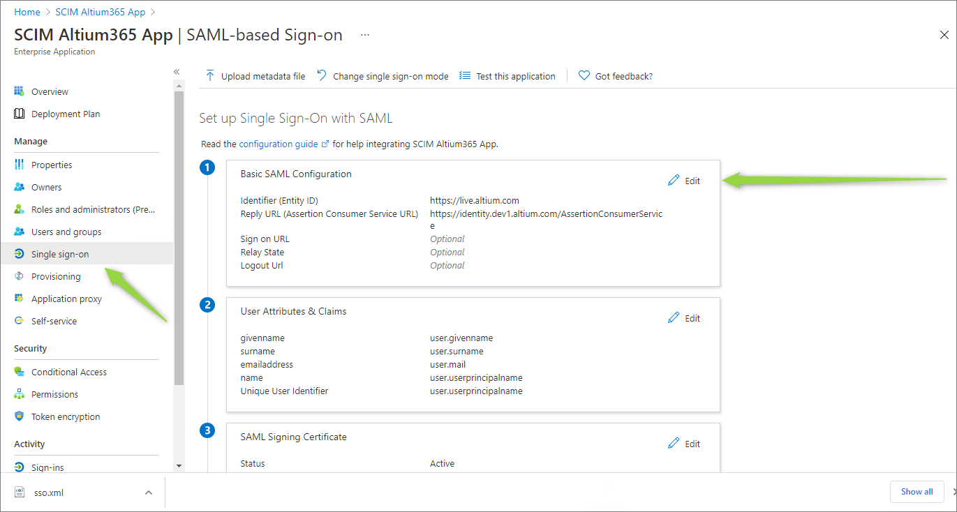 Back in the Authentication page, the configuration validity check is reported as successful and the Altium account's Single Sign-On capability can be enabled (