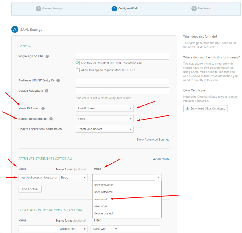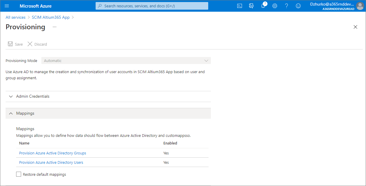 6. In the Mappings section, there are two selectable sets of attribute mappings – one for Group objects and one for User objects.