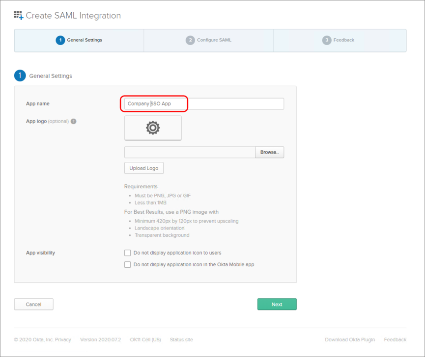 When configured and enabled in the Dashboard, the SSO system establishes authorized identities from your company's nominated Identity Provider (IdP), for example Okta, OneLogin, etc, with the ID assertion communications based on the standardized Security Assertion Markup Language (SAML 2.0). The SSO sign-in interface for your company, if not already in place, is usually based on a template or example provided by the IdP – this instigates the SAML-based authentication assertion exchanges and provides access to company services.
