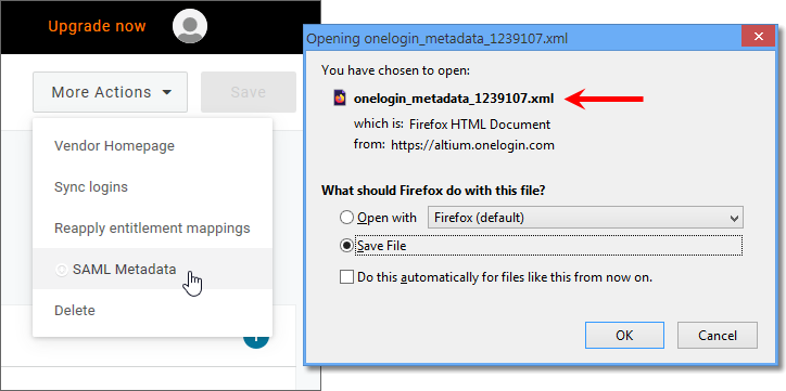 9. Upload the Metadata XML to the Authentication page, and then test the SAML integration connection.