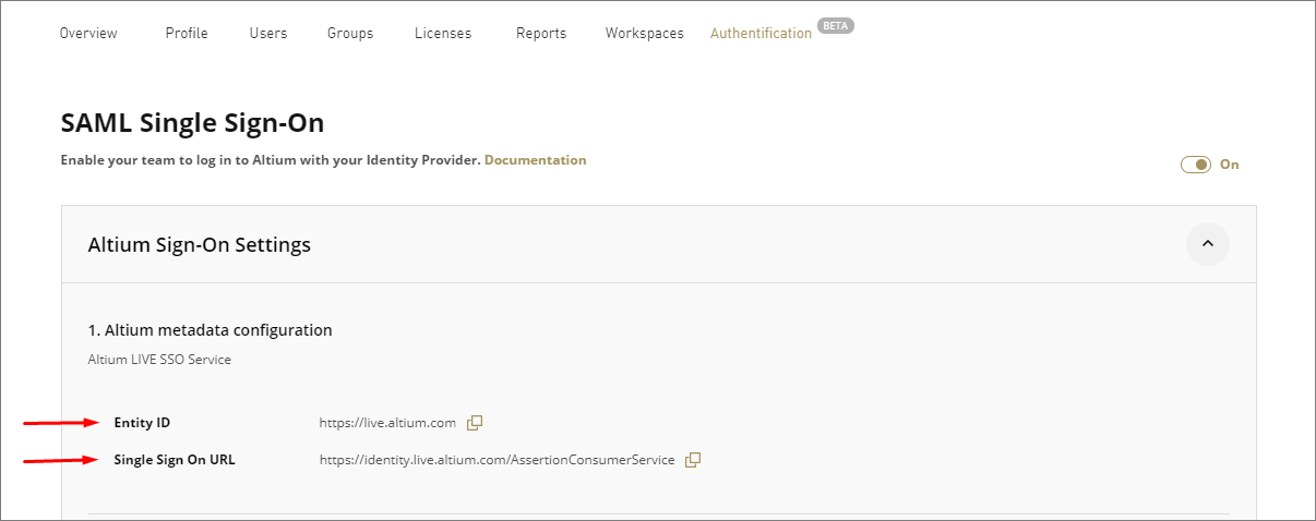 This backend configuration system allows account administrators to establish, test, enable and disable the SSO capability for company users. The SSO option is available when signing in to Altium Designer, AltiumLive, and an Altium 365 Workspace.
