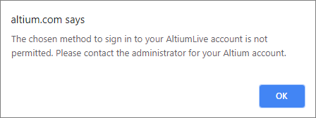 Along with providing a setup interface for configuring Altium SSO connectivity, the Dashboard Authentication page also provides global and individual control over the full range of user sign-in options – namely; traditional Email/Password, Google® and Facebook® sign-in, and Single Sign On via your organization's Identity Provider. The options enabled in the Authentication methods section of the page determine the sign-in methods available to all your organization's Altium account users.