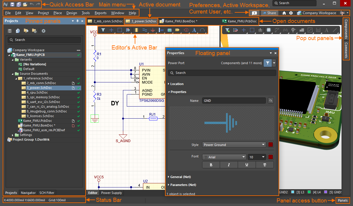 The way you work in Altium NEXUS is much like other Windows applications in that commands are accessed through familiar menus, graphical views can be zoomed and panned using standard Windows keyboard and mouse actions, and many of the commands and features can be accessed through keyboard shortcuts.