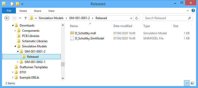 *.SimModel, *.mdl, *.ckt) downloaded to a separate sub-folder.
