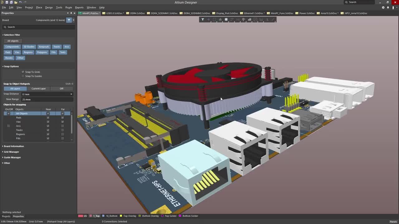 Clearly visualize and interact with your designs in native 3D with the advanced 3D engine in Altium Designer