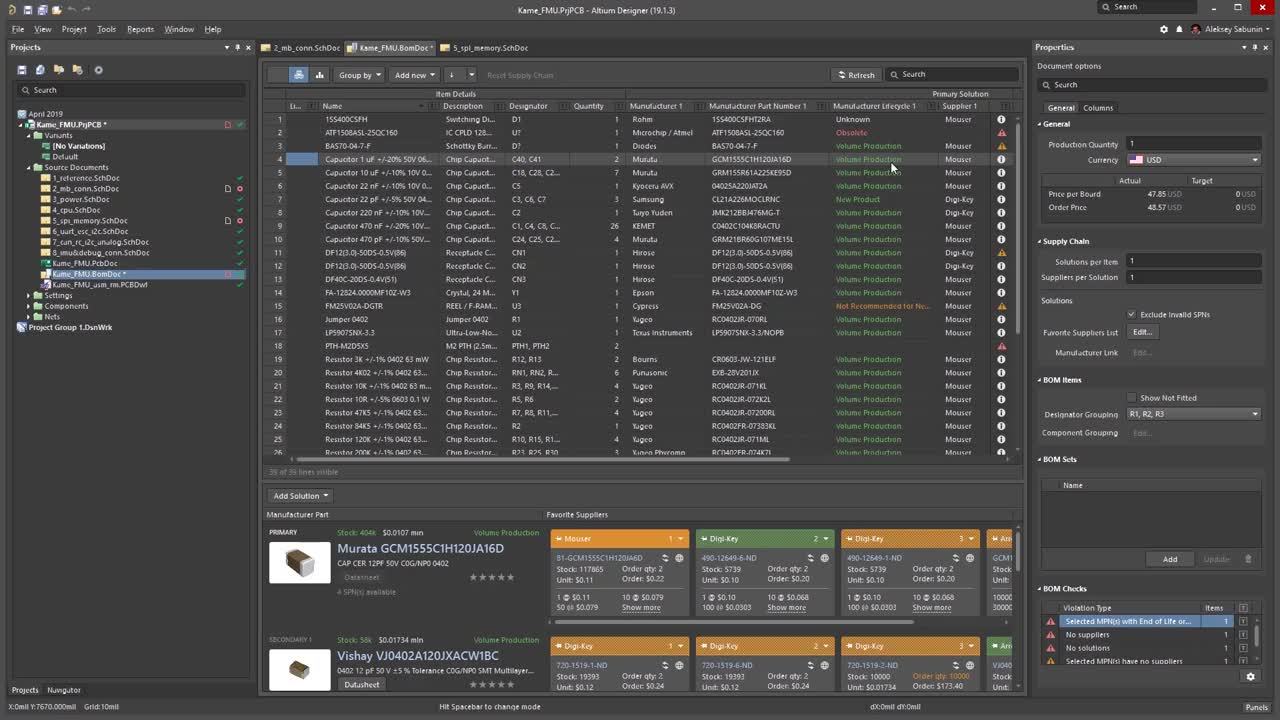 Learn the different component validation options used during the normal design process including validation against statuses within the local library and lifecycle information from global suppliers.