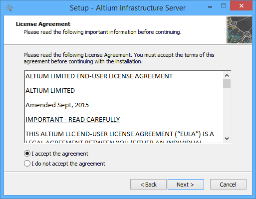 This page of the wizard presents you with the Altium End-User License Agreement (EULA).
