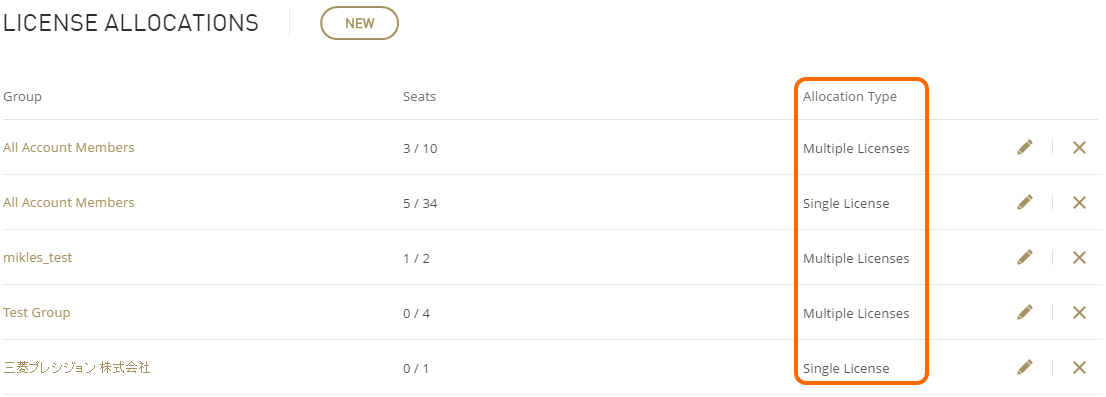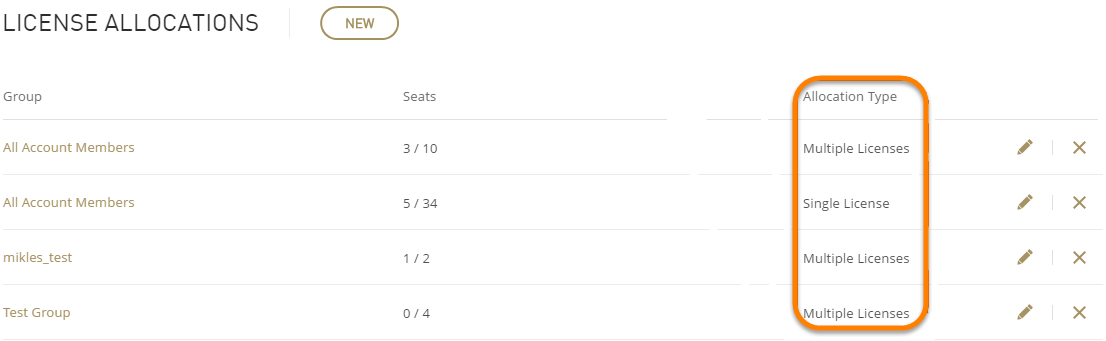 Once a license has been allocated to a group, you will notice that it has an Allocation Type - reported in the summary License Allocations section. This can be either Single License or Multiple Licenses.