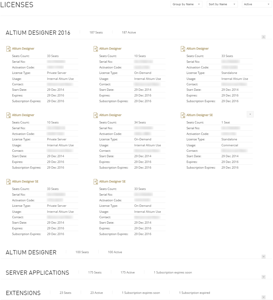 Altium Designer, Altium Designer SE, PDN Analyzer powered by CST(R)).Never. This field is really only meaningful when talking about a time-based license.Controls located above the list allow you to group, sort and filter the list in a variety of ways, to better target the licenses that you wish to view and/or manage.