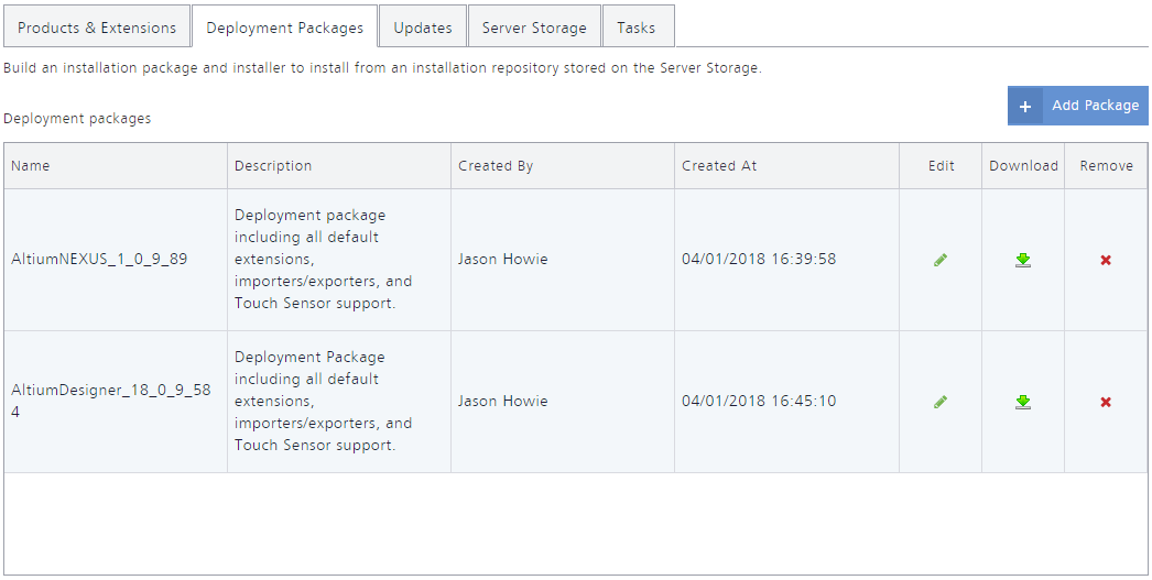 Each defined deployment package is stored in your local Altium Infrastructure Server.