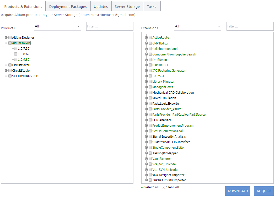 - acquire and store a product and any extension(s) within your local Altium Infrastructure Server.