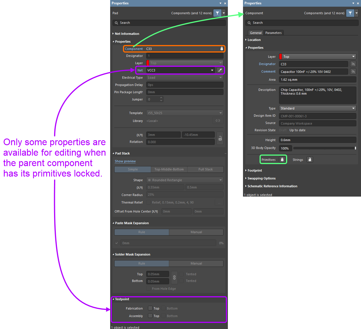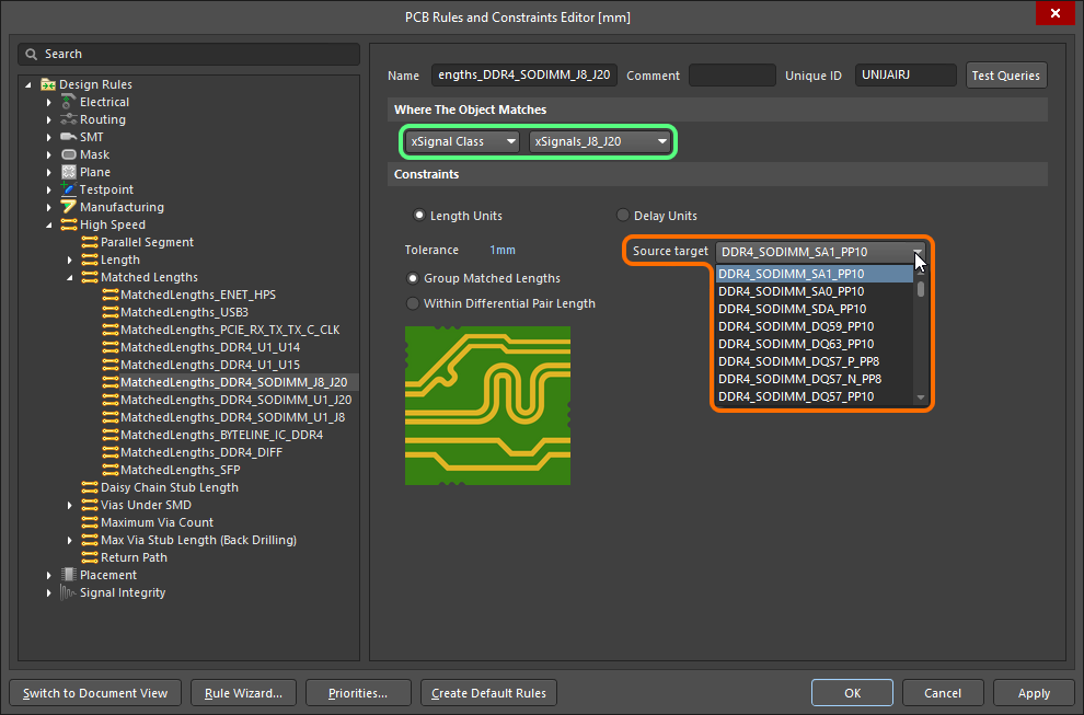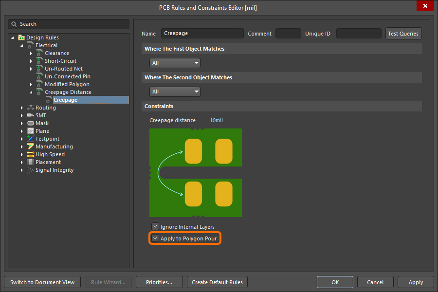 Changes made to PCB component designators did not previously update custom, designator-specific design rules. They had to be updated manually. Enabling this new feature changes references in design rules when PCB component designators