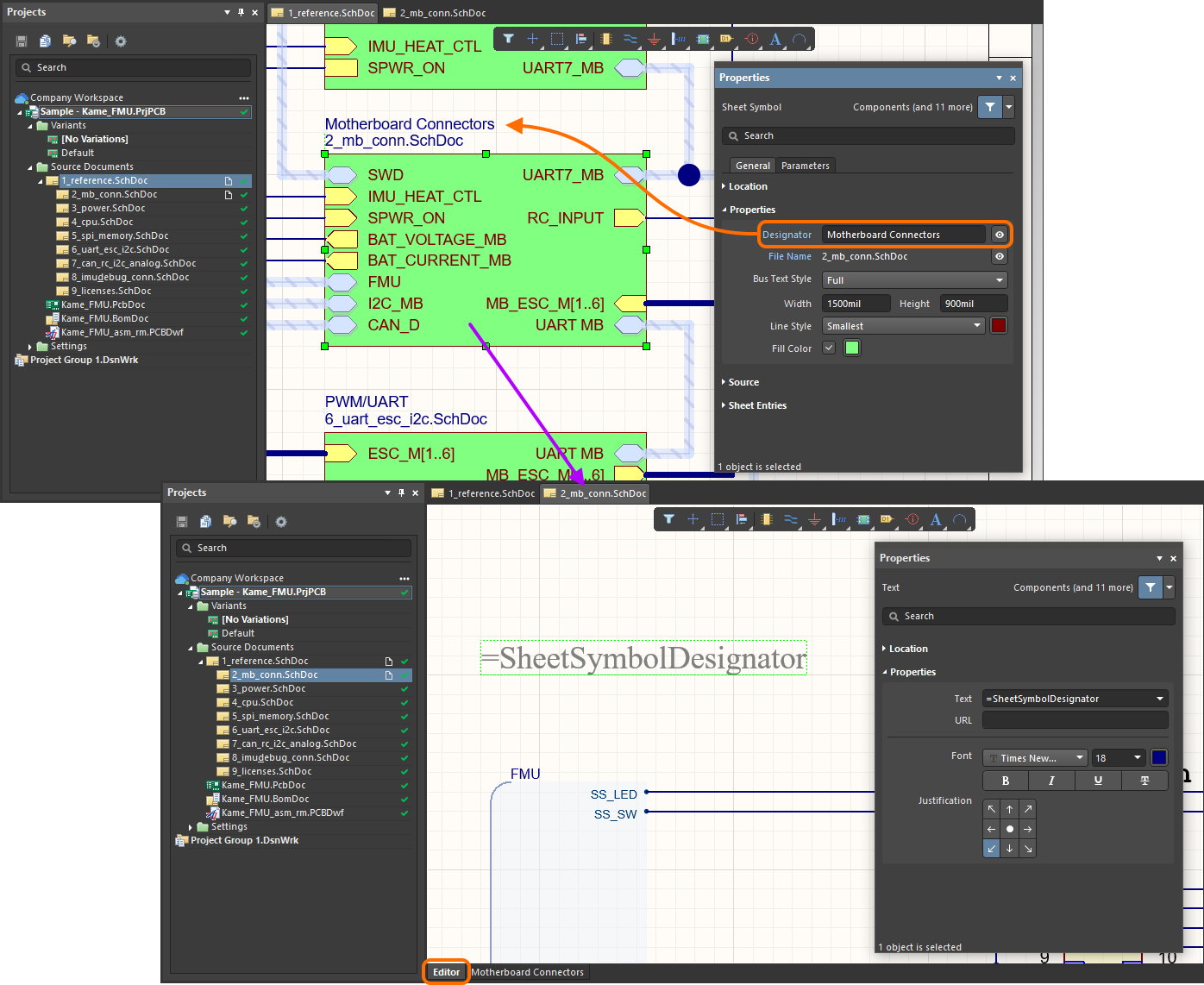 Adding cross-references to the project allows you to easily follow the connective flow of nets between the schematic sheets in a project. In this release, the support for automatically creating and updating cross-references has been extended for the