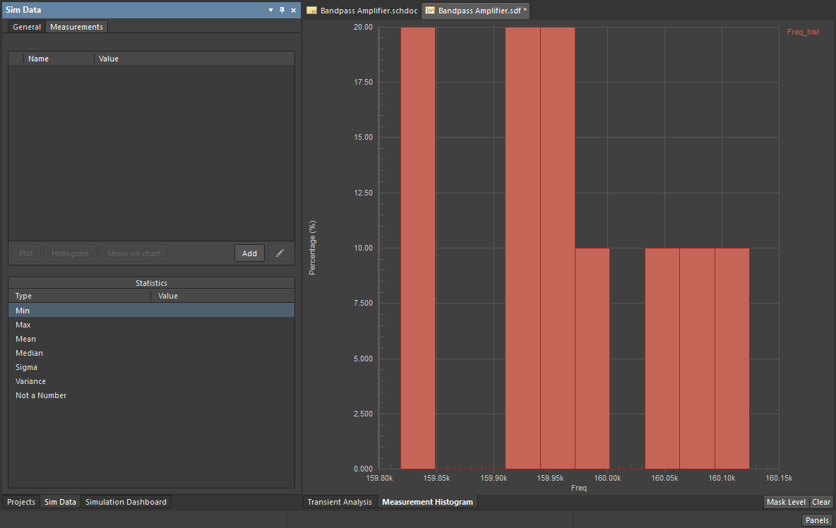 - Display Histogram - visualize the distribution of data by generating a histogram directly from the measurement results. Hover the cursor over the image below to display a histogram of the Monte Carlo analysis results.