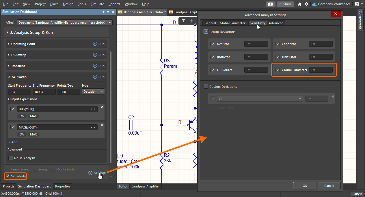 - Derive plot from measurements - generate a plot of one variable against another. For example, if a parametric sweep has been performed where two component values have been swept, these can be plotted against each other.