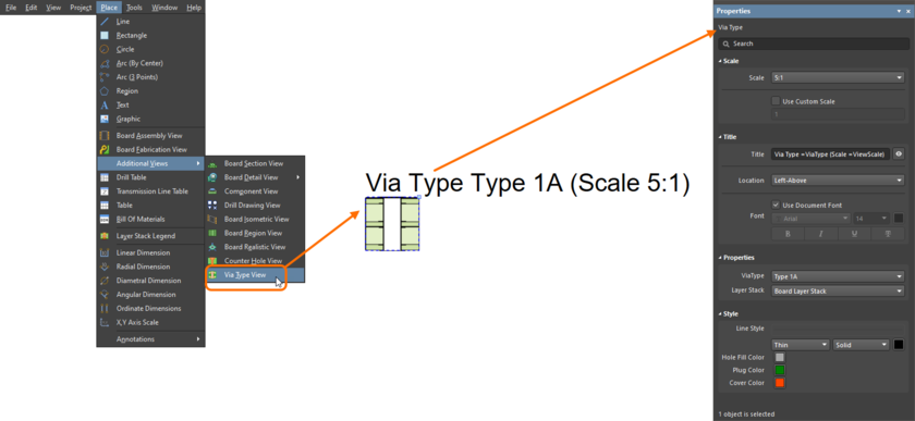 The PCB/PCBLIB List panels also now include a column titled IPC 4761 Via Type and you can add columns to a Drill Table object (titled Via Feature and Via Type) that display the