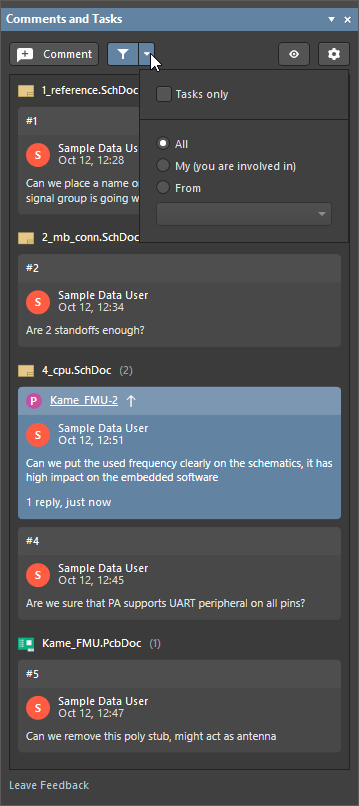 detached comment's tile in the panel to show the comment in the design space of the currently opened document. You can restore a comment by selecting it then clicking the mouse.