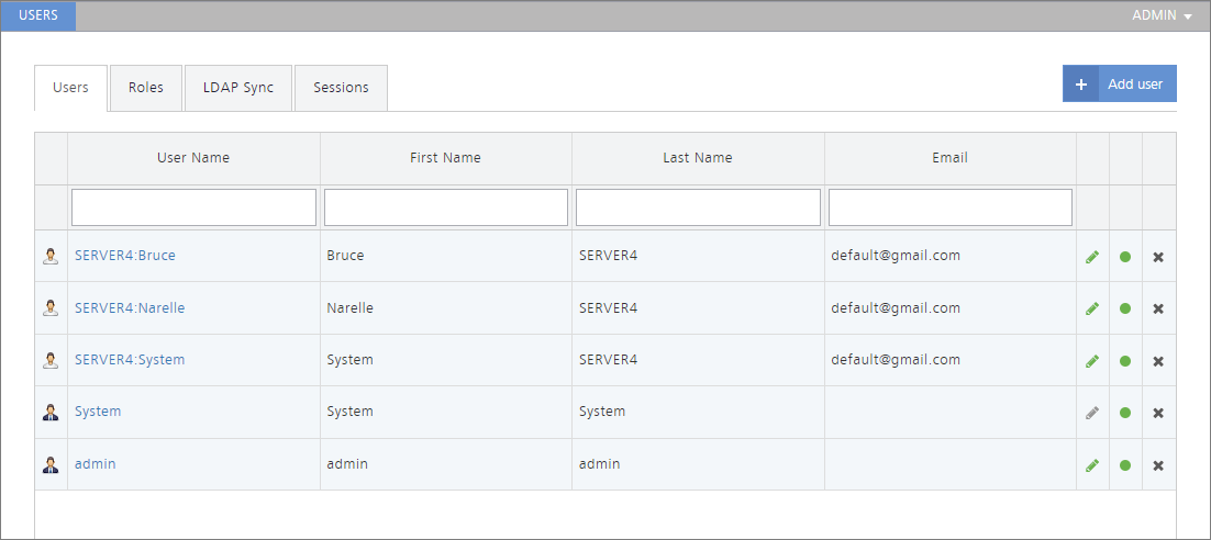 User names that have been synchronized to the central Licensing Server in a multi-server setup can be added to Roles, so as to manage license and seat availability. When a User then signs in to a local (department) Server, the licenses that are available from the central AIS will be determined by the Roles and License assignments configured for that synchronized User profile in the central Licensing Service.
