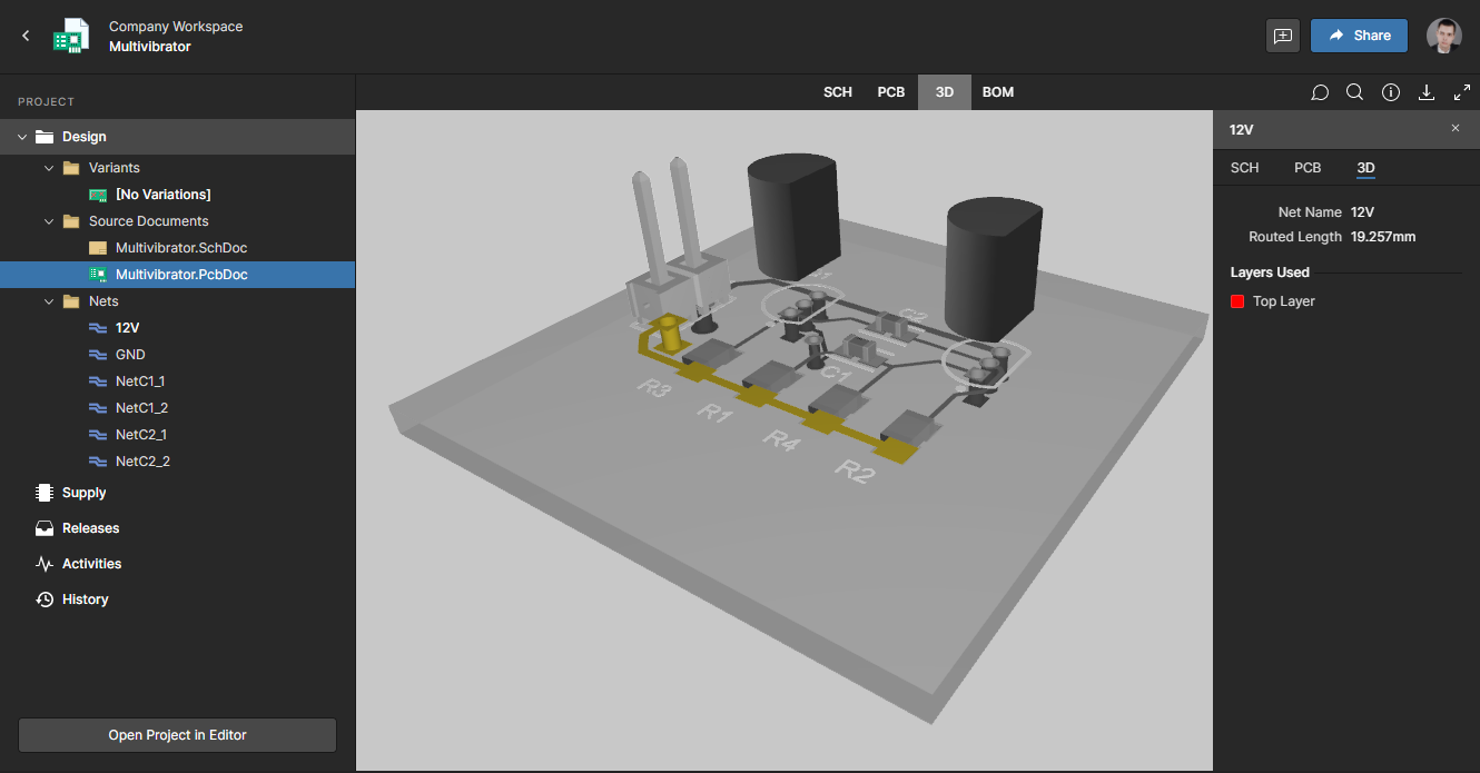 You started with a blank schematic sheet and worked through to a finished PCB with output files released to the Workspace, which is the entire design process in Altium NEXUS. Next, we will explore some features related to project management and collaboration.